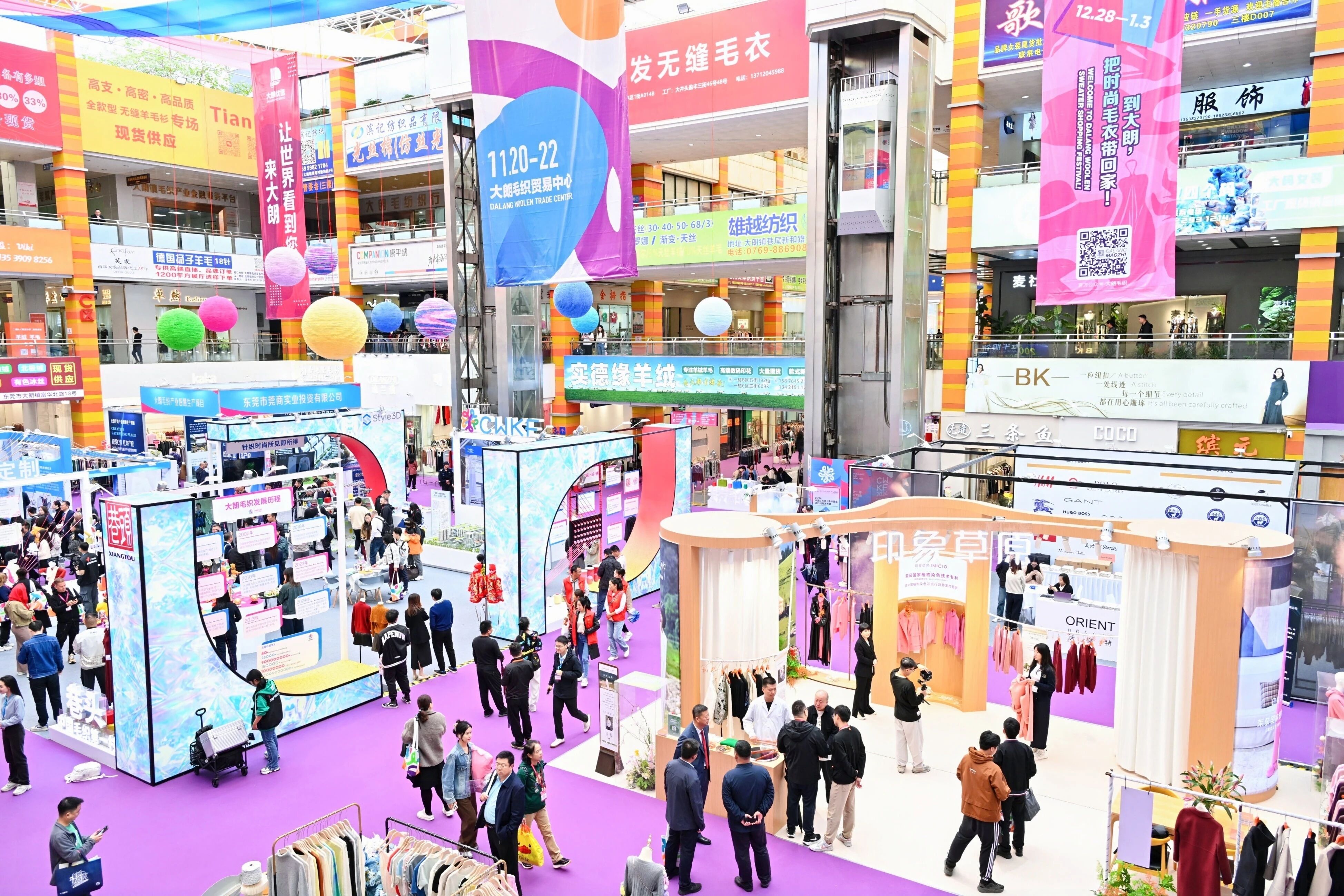 为了进一步扩大影响力,第二十二届“织交会”采取了区域联动与双会联动的策略。展会不仅在大朗镇内设立了大朗毛织贸易中心主会场,以及广东毛织市场、环球贸易广场等6个分会场,,还拓展至镇外“大朗优选七大飞地馆”,形成全方位、多层次的展示平台,开幕式当天将同步举行开幕仪式。