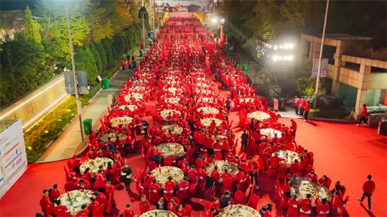 11月27号是意尔康举办品牌30周年庆典之际。这场庆典,不仅以规模动人,更以细节暖心。据悉,意尔康当天上午的庆典仪式本身就已足够的繁复盛大,到当晚的家宴,意尔康工业园区的每一条街道几乎都被宴席覆盖,全体意尔康员工同席的场面盛大而有序。从精心筹备的佳肴到周密完善的组织,背后是一项浩大而复杂的工程,也正因如此,才更显企业反哺员工的诚意与决心。