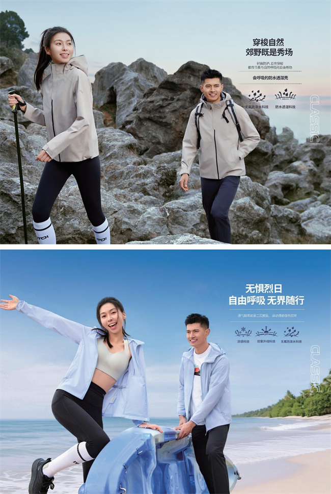 · 城市户外系列:满足精英人群走向户外、亲近自然的休闲需求,融合无氟防泼等友善科技,兼顾功能性与都市审美;